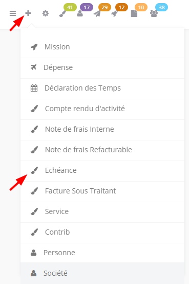 1- Par une activité de type " Échéance " : cliquer sur le bouton " +" tout en haut de votre écran. Puis " Échéance ".