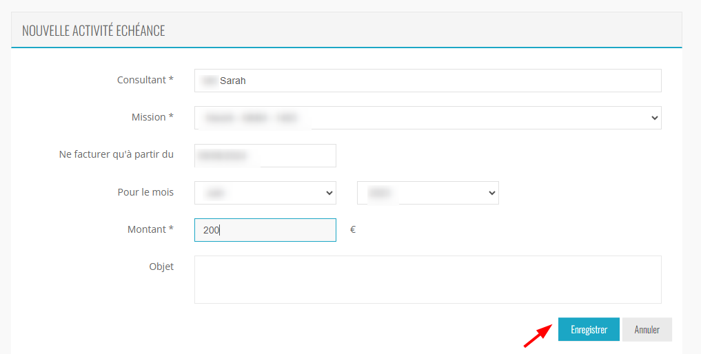 Renseigner un montant négatif, mettre une indication de l'objet de l'avoir dans le champ " Objet " ensuite " Valider ".