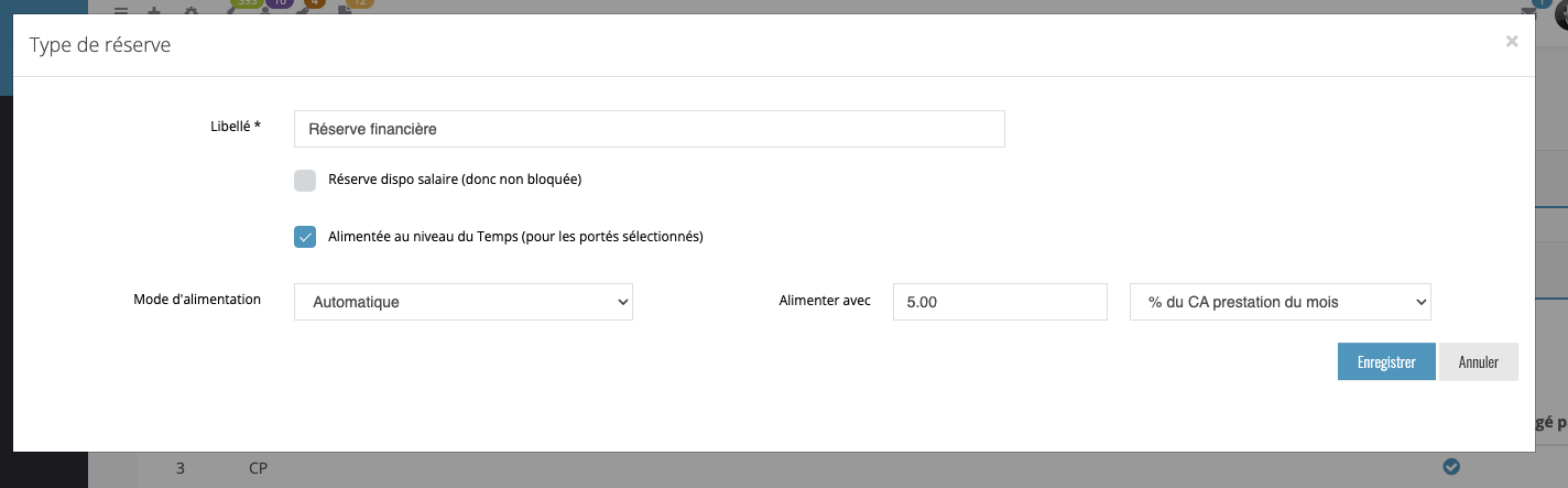 Alimenter avec "5" "% du CA prestation du mois".