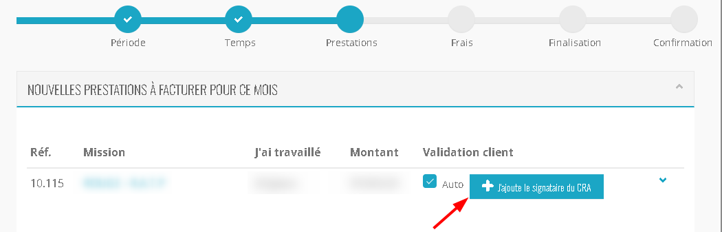 Le porté sera invité à le renseigner lors de sa première saisie des temps via un bouton " J'ajoute le signataire du CRA ".