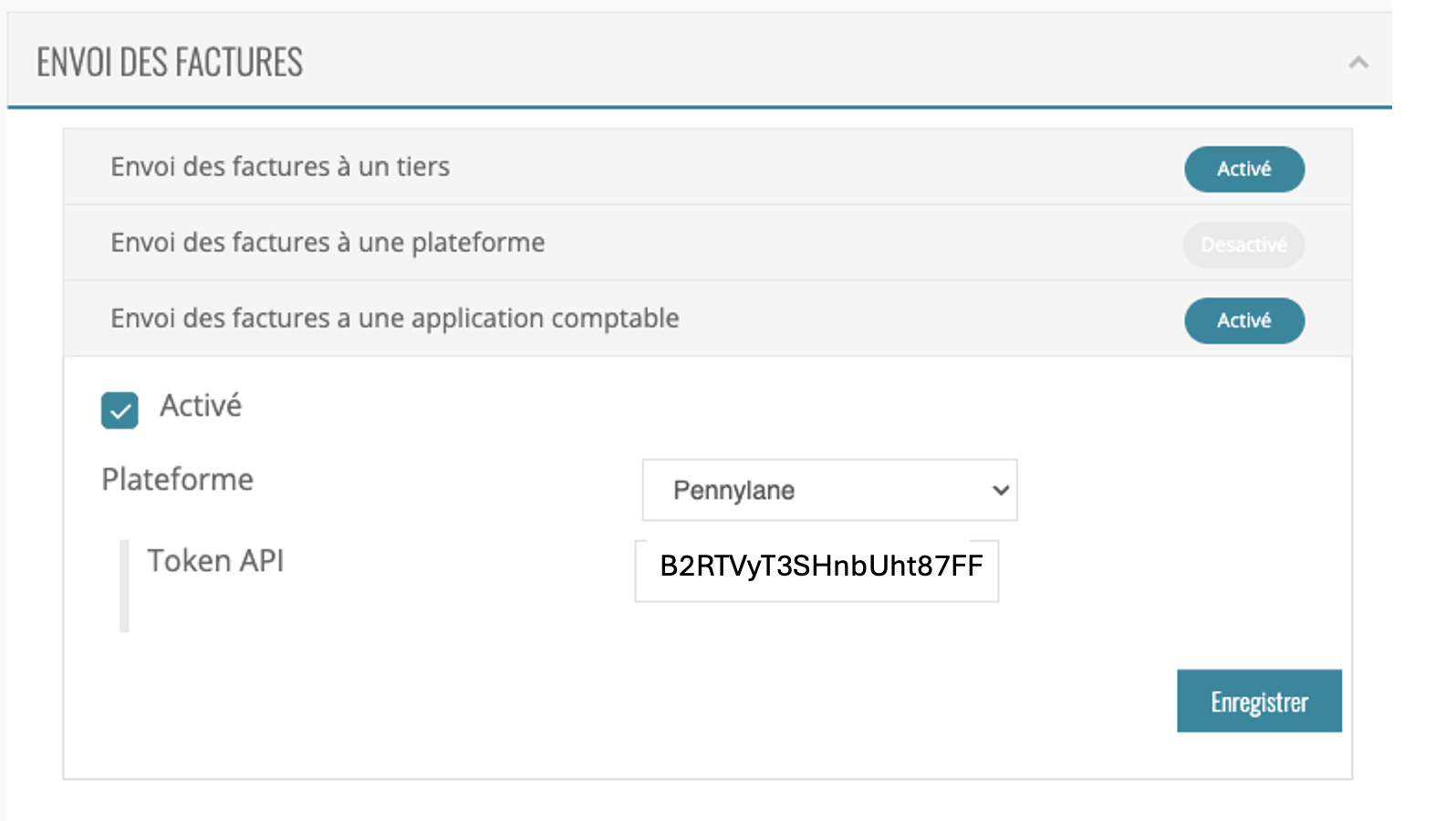 Cocher activé dans Plateforme sélectionnez "Pennylane"